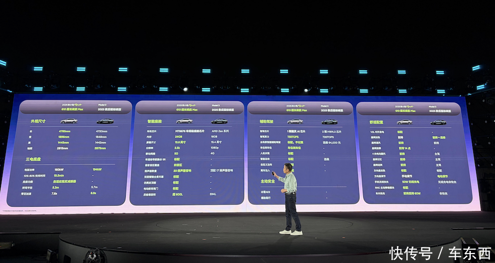 现场,何小鹏还致敬了特斯拉Model 3,并晒出了2026款MONA M03和特斯拉Model 3的详细对比清单。