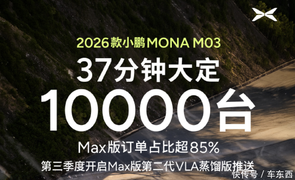小鹏2026款MONA M03上市37分钟,大定订单即突破10000台。